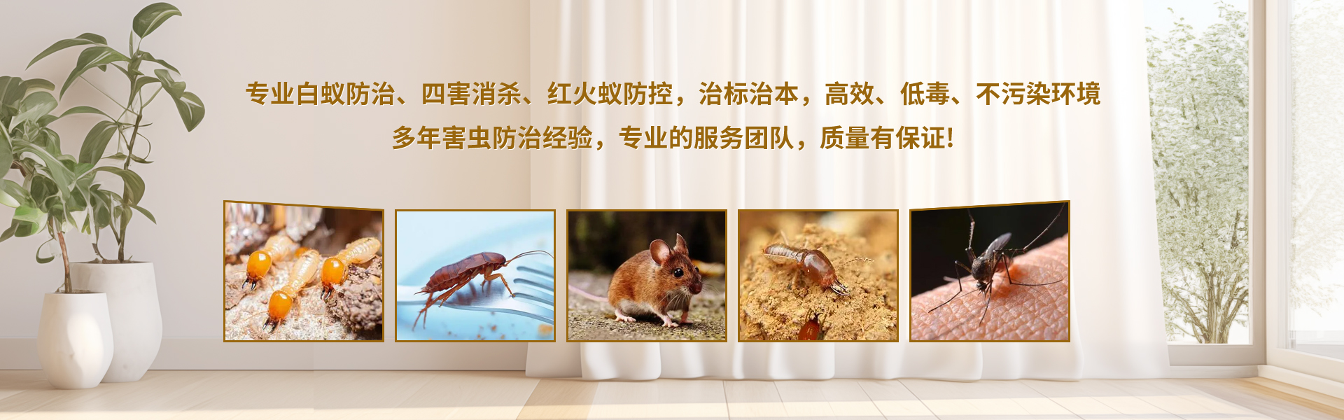 公司主要承接:南海白蚁防治,里水新建房屋预防白蚁工程,狮山室内装修预防白蚁工程,南海杀灭白蚁,南海房屋杀白蚁,大沥家庭杀灭白蚁服务,九江厂区仓库灭治白蚁工程,住宅小区、西樵花园别墅灭治白蚁工程,丹灶水库堤坝白蚁防治,园林、金沙古树白蚁防治。狮山四害消杀,松岗除四害(蚊、蝇、蟑螂、老鼠)消杀工程,官窑厂区四害消杀,和顺厂房除四害服务,桂城街道四害消杀工程,盐步厂区杀虫灭老鼠,各种环境大型灭老鼠工程,室外草坪绿化大面积杀灭红火蚁服务。本公司服务遍布整个广州与佛山地区白蚁防治工程、别墅白蚁灭治工程、工厂企业防治白蚁工程、园林水库白蚁防治。本公司是广东白蚁防治的专家,现有先进的白蚁防治与消灭白蚁的技术,多年的白蚁防治技术与经验,所以值得信赖。